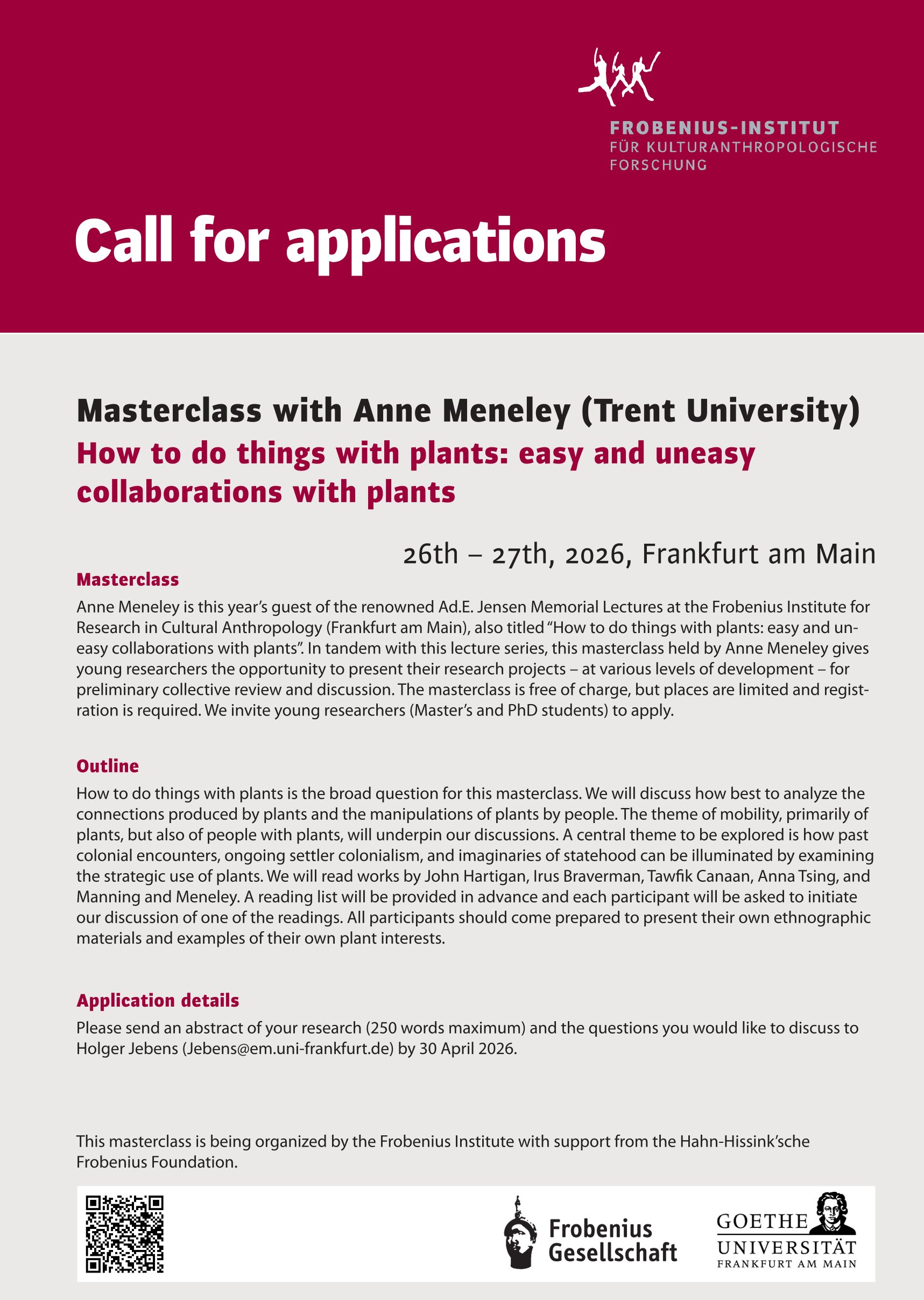 Das Frobenius-Institut verleiht einmal jährlich den Frobenius-Forschungsförderungspreis an exzellente ethnologische Dissertationen im deutschsprachigen Raum im Rahmen der Frankfurter Buchmesse.